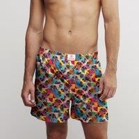These 100% cotton poplin boxer shorts feature a vibe of different colours a print of vinyl. Each colour displays detailed imagery evoking a sense of nostalgia and adventure. The breathable cotton material ensures a comfortable fit, making these boxer shorts as practical as they are stylish. Perfect for a unusual day or anyone who appreciates retro aesthetics, these shorts add a unique and bold touch to your underwear collection. Model Number: CLB2061 | CLAUDIO LUGLI Vinyl Abstract Cotton Poplin Print Bo...