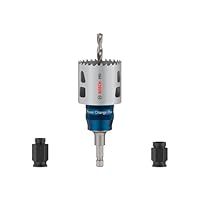 The PRO Multi Material Hole Saw has enhanced tooth design for fast and smooth cuts and high-cobalt HSS alloy teeth for longevity. A real time-saver for trade pros such as electricians or plumbers. With this Bosch PRO Multi Material PC Plus hole saw starter kit, you can use just one 51mm hole saw across multiple materials - it cuts holes in softwood, drywall, plastics, metal pipes and profiles or non-ferrous metals. This HSS hole saw is made with 8% cobalt for durability and great performance - it lasts ...