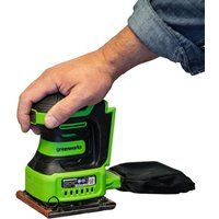 This Greenworks sander is ergonomically designed to be easy and comfortable to use, whilst still delivering enough power to ensure a smooth, high-quality finish over a range of surfaces. Robust and with a smart rubber handle to make sanding as comfortable as possible, you can sand whatever you need for as long as you like. Convenience is guaranteed with no electric cables to contend with, simply insert the battery and work. - Manufacturers part number: Greenworks_