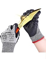 - 【Professional Protecting and Flexibility】Please note: The product is a pair of gloves, including left and right hands. Cut-resistant gloves in accordance with the Standard ANSI A4 and the European Standard EN388 4542, cut-resistance level 5.which is more than 10 times that of ordinary work gloves and more than 4 times that of leather gloves.The high performance cut resistant material HPPE is very light,so it is ideal for precision tasks where the worker needs feel and dexterity with what they are doing.