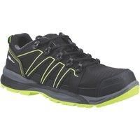 These protective, metal free safety shoes come with composite toe protection and a non-metallic nail penetration sole. They have a lightweight EVA midsole and a slip resistant rubber outsole. Safety Rating: S3 SRC 200J Composite Toe Cap Steel Penetration-Resistant Midsole Standard Fit Sole Not Liquid-Resistant Not Tested for Sole Heat Resistance Not Water-Resistant Anti-Static Sole Shock-Absorbing Heel Safety Rating: S3 SRC 200J Composite Toe Cap Steel Penetration-Resistant Midsole Standard Fit Sole Not... - Manufacturers part number: 393XC