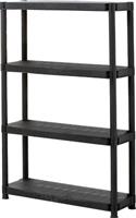 This Four Tier Shelving Unit efficiently maximises your storage solutions in the garage, utility room or home office. With an attractive black plastic finish, it can be fastened to the wall, ensuring maximum stability. No tools are needed for assembly, making putting up this unit a breeze. 4 shelves. Weight capacity per shelf/tier 25kg. Total weight capacity 100kg. Frame material: plastic. Easy assembly. Additional features: This product is perfect for storing products up to 25kg per shelf. Should you n... - Manufacturers part number: 12004