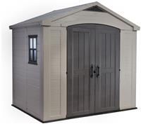 Manufactured in durable resin with steel reinforcement, the Keter Apex 8x8 Shed is built to last. Complete with wide double doors, the 8x8 features a window and skylight for additional daylight access. It also includes two shelves and brackets, and heavy duty floor. Low maintenance and virtually fade-free. Just an occasional wash is all that is needed to keep it looking new. External Dimensions: W256.5cm D255cm H243cm. Plastic and wooden sheds, like this one, come supplied with a floor - an integral par... - Manufacturers part number: K209875