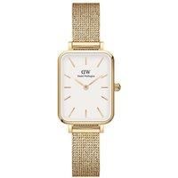 Daniel Wellington Pressed Evergold Watch - the only accessory you need. The jury is still out on the Quadro Pressed Evergold White. Is it a gold watch or a classy piece of jewellery This gold women's watch perfectly balances functionality and aesthetics. The delicate gold mesh watchband shimmers tastefully as it supports the square dial with sleek rounded edges. The simple white dial, featuring a sunray index, echoes the watch strap's glistening gold, while allowing the overall design to breathe and f... - Manufacturers part number: DW00100556