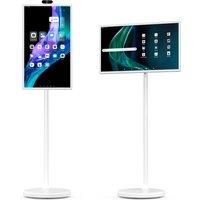 32" portable smart tv stand on wheel, battery operated tv android 13, 8-core, 8GB RAM, 128GB flash, 4K camera,incell LCD w Touch
