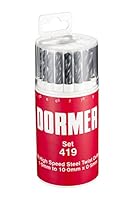 The Dormer A191 419 set contains 19 high speed steel twist drill bits in a cylindrical dispenser case. The set covers the 1.0mm to 10.0mm range in 0.5mm increments....