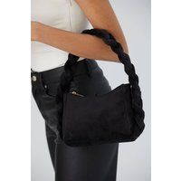 Discover timeless elegance with our velvet bag, crafted from soft, luxurious velvet for a refined finish. Designed with a secure zip closure, it keeps your essentials safe while adding effortless style to any outfit. The unique braided handle brings a touch of artisanal detail, making this piece stand out as both a chic day bag and an elegant evening purse. Perfect for special occasions or elevating your everyday look, this velvet handbag is the versatile accessory your wardrobe has been waiting for. | Belissh Women's Braided Handle Velvet Shoulder Bag in Black - Manufacturers part number: Belissh_7331898672103