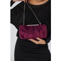This elegant evening handbag is perfect for any special occasion. Handcrafted from premium satin, fully lined, with one main compartment and a magnetic gold closure. Carry as a clutch, or wear it across the body using the fine gold chain strap. | Belissh Women's Pleated Satin Clutch Bag in Burgundy - Manufacturers part number: Belissh_7331898672523