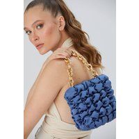 This quilted handbag with a chunky gold strap makes a bold statement and is great for day and night. Handcrafted from premium satin, with one main compartment and a magnetic closure. Wear it on the shoulder or draped over the arm. | Belissh Women's 3d Quilted Satin Handbag in Blue - Manufacturers part number: Belissh_7331898672967