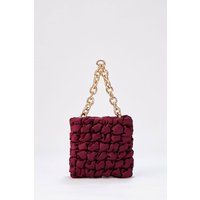 This quilted handbag with a chunky gold strap makes a bold statement and is great for day and night. Handcrafted from premium satin, with one main compartment and a magnetic closure. Wear it on the shoulder or draped over the arm. | Belissh Women's 3d Quilted Satin Handbag in Burgundy - Manufacturers part number: Belissh_7331898672998