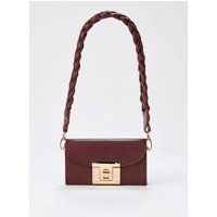 This mini shoulder bag features a thick braided detachable strap that makes a bold style statement. Perfect to hold a phone and lipstick for a night out. Crafted from premium vegan leather with a large gold twist lock closure. | Belissh Women's Mini Shoulder Bag With Chuncky Braided Strap in Burgundy - Manufacturers part number: Belissh_7331898673018