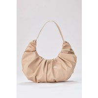 Elevate your style with our gatherin detail vegan leather shoulder bag in beige a chic and versatile accessory that combines fashion and functionality effortlessly. Crafted from high-quality vegan leather, this shoulder bag features a fixed strap for comfortable wear and a reliable zip closure to secure your belongings. | Belissh Women's Vegan Leather Gathering Detail Shoulder Bag in Nude - Manufacturers part number: Belissh_7331898673131