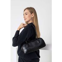 Chic and functional, this croc-embossed faux leather shoulder bag features a secure zipper closure and two interior pocketsincluding one extra pocket for better organization. The fixed shoulder strap allows for comfortable over-the-shoulder wear, making it a stylish and practical choice for everyday use. | Belissh Women's Croc Faux Leather Shoulder Bag in Black - Manufacturers part number: Belissh_7331898673759