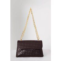 Versatile and stylish, this mini bag features a chic braided PU exterior and an adjustable chain handle that allows you to wear it as a crossbody or a shoulder bag. Compact yet functional, it secures your essentials with a magnetic closure while adding a modern, textured accent to any outfit. | Belissh Women's Braided Pu Mini Shoulder Bag in Brown - Manufacturers part number: Belissh_7331898673773