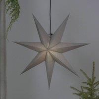 Ozen grey paper star - a discreet Christmas decoration for the window This seven-pointed paper star has a harmonious appearance, as far as its shape and colour are concerned, and fits into a wide variety of interiors. Whether it is suspended in front of a window or freely in the room, for example from a beam, the Ozen paper star will provide atmospheric lighting accents and a perfect Christmas ambience anywhere. Comes with an E14 socket. The star is supplied with energy via a long, black cable with a pl...