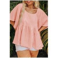 Elevate your wardrobe with the Apricot Pink Plus Size Textured Wide Short Sleeve Babydoll Blouse. This chic and flattering blouse features a textured fabric that adds depth and visual interest to your outfit. Designed with on-trend wide sleeves and a timeless crew neck it offers a touch of drama and sophistication. Perfect for various occasions this versatile piece will become a staple in your plus-size collection. | Everyday The Label Women's Apricot Pink Plus Size Textured Wide Short Sleeve Babydoll ...