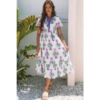 Beautiful floral print maxi dress with puff sleeves and a tiered skirt perfect for spring and summer | Everyday The Label Women's White Floral Puff Short Sleeve V Neck High Waist Maxi Dress Dresses | Size: XL