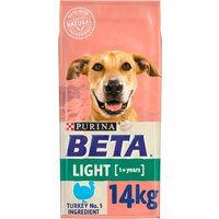 Dogs with a healthy appetite can be prone to gaining some additional weight, even if they live an active and curious lifestyle. That’s why our PURINA BETA Adult Light Turkey dry dog food offers tailored nutrition enriched with all the key nutrients your dog needs. It is made with a lower level of fat to help your dog maintain an ideal body condition, ensuring it is fit and ready to explore the world! This dish is also specially formulated with selected natural ingredients and a natural prebiotic to help support digestive health. And all this without including any added artificial colours, flavours or preservatives! PURINA BETA Adult Light Turkey at a glance: - New improved recipe! - Turkey as the primary ingredient - Made with selected na... - Manufacturers part number: Beta_