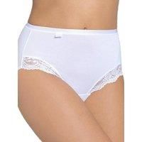 Sloggi Romance Maxi Briefs. Comfortable yet stylish, thanks to lace inserts at the legs and a hint of sheen to the fabric. This product is recommended as hand wash only. | Sloggi Women's Romance Maxi Brief in White | Size: 10 - Manufacturers part number: 10031897-0003