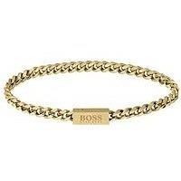 BOSS Boss Chain Logo Bracelet BOSS bracelet from the Chain for Him collection in gold IP. Magnetic closure etched with BOSS. Size medium 190mm. Fashion Jewellery Type: Bracelets
