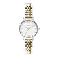 Classic and versatile, this two-tone style is endlessly wearable. A white dial is accented with gold-tone markers and finished with a mixed-metal bracelet strap in a gold and silver finish for a contemporary twist. Youll be reaching for this one day after day. Featuring a 30mm two-tone stainless and gold IP watch, a white dial with gold IP markers, finished on a stainless and gold IP bracelet. Water resistant to 3 ATM. Watch features:Analogue display. White dial. Case width 30mm. Sterling silver case. M...