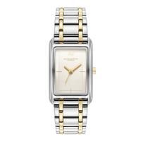 Our rectangular Grove dial is just the style for fans of classic design with a playful twist. The rectangular face is full of sophisticated details with a powdered centre and sunray border in Silver White. A slim metal case and minimalist markers make for simple everyday elegance. Finished with a two-tone 5-link bracelet strap, this watch elevates any look, day or night. Olivia Burton 30 x 21mm watch, stainless steel and gold IP case, white sunray dial. Finished on a stainless steel and gold IP link bra... - Manufacturers part number: 24000197