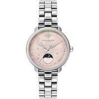 Olivia Burton 34mm Moonphase Stainless Steel Watch Olivia Burton 34mm three hand watch with stainless steel case, light pink dial with day to night moonphase feature, stainless steel bracelet. Water resistant to 3ATM. 24Hr Display: N Case Diameter (in cm): 3.4 Case height (in cm): .8 Case Length (in cm): 3.4 Case Shape: Round Case Width (in cm): 3.4 Fastening Type: Bracelet Glass: Mineral Movement: Japanese Quartz (battery) Strap Material: Stainless Steel Water Resistant: Y
