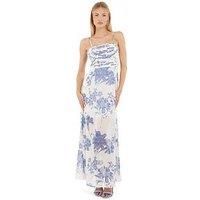 Guess Sl Ellie Dress Size & Fit True to size - order your usual size Regular fit Maxi length Available in sizes 8 - 16 Details Ellie Dress by Guess Blue Sleeveless Adjustable length straps Back zip fastening Large floral print Straight neckline Material & Care Material Content: 100%Polyester Washing Instructions: Machine Washable