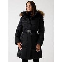 Guess Marina Real Down Puffer Coat Size & Fit True to size - order your usual size Regular fit Knee length Available in sizes XS - XL (XS:UK 6, S:UK 8, M:UK 10, L:UK 12, XL:UK 14) Total length: 90cm / 35in Sleeve length: 63cm / 24.5in Details Marina Real Down Puffer Coat by Guess Black Real down quilted jacket for lightweight warmth Hood with faux-fur trim for added cosiness Protective mock neck and elasticated cuffs to keep out the cold Side slant pockets for everyday essentials Hidden zip fastening wi...