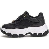 Guess Berrett2 Ultra Chunky Sneaker Size & Fit True to size - order your usual size Standard fit Available in sizes 3 - 8 Sole height 7.3cm Details Berrett2 Ultra Chunky Sneaker by Guess Black Round toe Flat heel with chunky sole Fastening with laces 4G and peony print Gold tone hardware Guess branding Material & Care Material Content: 68%Polyurethane 32%Polyester