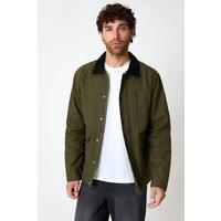 Elevate your wardrobe this season with this canvas twill jacket from Threadbare. With concealed zip and popper fastening, two front patch pockets with snap fastening, a zip up breast pocket and one inner pocket for your belongings. This jacket is fully lined with diamond quilting and has a shaped corduroy collar. The perfect choice to keep you stylish and warm as the seasons transition. | Threadbare Men's Cotton Twill Lightweight Jacket in Khaki | Size: Medium