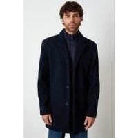 Threadbare Men's Faux Wool Mock Layer Longline Mac in Navy | Size: XL
