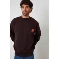 Layer up in laidback comfort with this graphic print relaxed fit crew neck sweatshirt from Threadbare, ideal for casual days paired with jeans or joggers. Features a small graphic on the chest, a large graphic print on the back, and ribbed crew neck, cuffs, and hem for comfort. | Threadbare Men Graphic Print Crew Neck Sweatshirt in Chocolate | Size: Medium