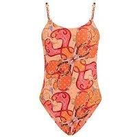 Guess One Piece Swimsuit Size & Fit True to size - order your usual size Available in sizes XS - XL Details One Piece Swimsuit by Guess Orange Scoop neck Guess branding print Logo charm straps in gold tone Products must be returned unworn, unwashed, in their original condition with all tags and original order packing slip We reserve the right to refuse returns that show signs of wear or do not meet the above criteria Material & Care Material Content: 85%Polyester 15%Elastane/Spandex Washing Instructions... - Manufacturers part number: WC5H4