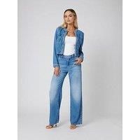 Guess Wide Leg Braided Jeans Size & Fit True to size - order your usual size Available in sizes 27 - 32 Full length Details Wide Leg Braided Jean by Guess Blue Wide leg Braided woven waistband Mid rise Five pocket design Belt loops Material & Care Material Content: 82%Lyocell 18%Cotton Washing Instructions: Machine Washable - Manufacturers part number: WC9PV