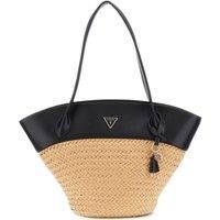 Spacious tote design with contrasting natural woven base and sleek black trim Signature Guess triangle logo embellishment on the front Sturdy double handles for comfortable carrying Branded interior lining with secure zip pocket Decorative tassel charm detail adds a touch of flair The Venere Large Tote combines natural textures with contemporary design for a versatile everyday accessory. The woven base creates a relaxed summer feel while the structured black trim adds sophistication and durability. Perf...
