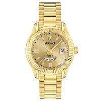VERSACE Apodis 41mm Gold Tone Case Golden Dial Watch Size & Fit Available in one size Details Apodis, 41mm Gold Tone Case, Golden Dial by VERSACE Classic warm gold tone Case: Stainless Steel & IP2N case (4.1cm) Dial: Gold sunray dial / Medusa and Versace Logo at 12h Bracelet: Gold Stainless Steel & IP2N band with butterfly buckle Movement: RONDA 515.24 GMT 3-hands movement Water Resistant: 5 ATM Depth: 9.15 MM Height: 41 MM Width: 41 MM - Manufacturers part numbers: VE0U00525|WUPPA