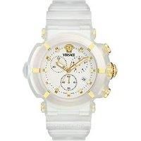 VERSACE Real Active Chrono, 45Mm Case, White See Thru Dial, White Strap VERSACE REAL ACTIVE CHRONO, 45MM CASE, WHITE SEE THRU DIAL, WHITE STRAP 24Hr Display: N Depth: 14 MM Height: 45 MM Width: 45 MM Case Diameter (in cm): 4.5 Case height (in cm): 4.5 Case Length (in cm): 4.5 Case Shape: Round Case Width (in cm): 4.5 Fastening Type: Bracelet Glass: Sapphire Movement: Swiss Quartz (battery) Strap Material: PU Water Resistant: Y