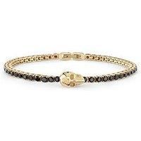Philipp Plein Tennis Ip Yellow Gold Tone Black Crystals Skull Bracelet Size & Fit Available in one size Details Tennis, Ip Yellow Gold Tone, Black Crystals Skull Bracelet by Philipp Plein Stunning colour contrast with opulent gold and bold black tones Statement skull design Unisex
