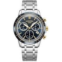Roamer of Switzerland Roamer Mecury Chronograph Blue/Gold Dial lStainless steel Roamer Swiss Made Men's Mecury Chronograph Blue/Gold Dial lStainless steel 24Hr Display: N Depth: 10 MM Height: 43 MM Width: 43 MM Age Range: 8+ Case Diameter (in cm): 43 Case height (in cm): 10 Case Length (in cm): 43 Case Shape: Round Case Width (in cm): 43 Fastening Type: Bracelet Glass: Sapphire Movement: Swiss Quartz (battery) Strap Material: Stainless Steel Water Resistant: Y Swiss Made 7yr Warranty Full Chronograph F...