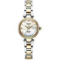 Roamer of Switzerland Roamer Dreamline Diamond White MOP Dial Gold IP Bicolour Stainless Steel Roamer Swiss Made Ladies Dreamline Diamond White MOP Dial Gold IP Bicolour Stainless Steel 24Hr Display: N Depth: 8 MM Height: 28 MM Width: 28 MM Age Range: 8+ Case Diameter (in cm): 28 Case height (in cm): 8 Case Length (in cm): 28 Case Shape: Round Case Width (in cm): 28 Fastening Type: Bracelet Glass: Sapphire Movement: Swiss Quartz (battery) Strap Material: Stainless Steel Water Resistant: Y Swiss Made 7yr...