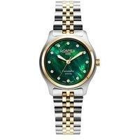 Roamer of Switzerland Roamer Cassandra Green MOP Diamond Dial Gold IP Bicolour Stainless Steel Roamer Swiss Made Ladies Cassandra Green MOP Diamond Dial Gold IP Bicolour Stainless Steel 24Hr Display: N Depth: 8 MM Height: 31 MM Width: 31 MM Age Range: 8+ Case Diameter (in cm): 31 Case height (in cm): 8 Case Length (in cm): 31 Case Shape: Round Case Width (in cm): 31 Fastening Type: Bracelet Glass: Sapphire Movement: Swiss Quartz (battery) Strap Material: Stainless Steel Water Resistant: Y Swiss Made 7yr...