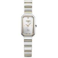 Roamer of Switzerland Roamer Olivia Diamond Silver Dial Gold IP Bicolour Stainless Steel Octagonal Case Roamer Swiss Made Ladies Olivia Diamond Silver Dial Gold IP Bicolour Stainless Steel Octagonal Case 24Hr Display: N Depth: 8 MM Height: 32 MM Width: 18 MM Age Range: 8+ Case Diameter (in cm): 32 Case height (in cm): 8 Case Length (in cm): 29 Case Shape: Rectangular Case Width (in cm): 18 Fastening Type: Bracelet Glass: Sapphire Movement: Swiss Quartz (battery) Strap Material: Stainless Steel Water Res...