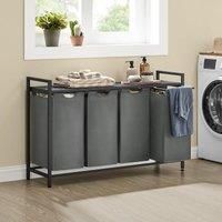 This four-compartment laundry hamper is designed for households that need extra sorting power without sacrificing style. Each removable liner holds its shape with a sturdy base and offers easy transport to the laundry machine. The spacious slatted top shelf gives you room for detergent, baskets, or folded towels, while the solid MDF and steel frame supports everything securely. Built for stability with adjustable feet and crafted to blend seamlessly into your dcor, this hamper makes sorting clothes more...