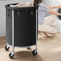 Transform laundry management with this spacious wheeled basket measuring 50 x 72.5 cm, providing 110L capacity perfect for a week's worth of family laundry. The heavy-duty steel tube construction with reinforced U-shaped plates supports up to 20 kg, while the powder coating ensures rust resistance for lasting durability. The high-quality 600D polyester fabric bag features interior PVC coating for water resistance and easy cleaning, with secure clasps attaching firmly to the steel frame. Four castors in...