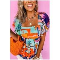 This Sky Blue Tropical Printed Square Neck Flutter Sleeve Babydoll Blouse captures the essence of summer with its vibrant tropical print. The square neck adds a contemporary touch while the flutter sleeves offer a graceful and ethereal aesthetic. The babydoll design brings a hint of whimsy and sweetness perfect for warm-weather styling. | Everyday The Label Women's Sky Blue Tropical Printed Square Neck Flutter Sleeve Babydoll Blouse in Pale Blue | Size: Large