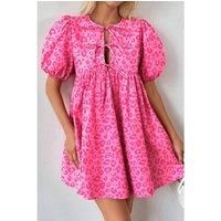 Stylish mini dress featuring a vibrant leopard print and flattering puff sleeves | Everyday The Label Women's Rose Leopard Puff Sleeve Tie Front High Waist Mini Dress Mini Dresses | Size: Small