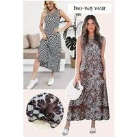 Versatile sleeveless maxi dress with a checkered and leopard print Relaxed fit Perfect for casual or vacation wear | Everyday The Label Women's Multicolour Leopard Checkered Double Printed Reversible Sleeveless | Size: Large