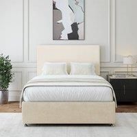 Delivered to a room of choice. A solid platform top base from one of the UK's leading manufacturers. Providing support and a firm foundation for your mattress. Finished in a lovely plush velvet fabric with chrome fittings and gliders. This divan is universal meaning the headboard and storage can be placed on any side. This product comes with an adjustable headboard with struts. Storage NOT included. Can be purchased with or without headboard and with 0, 2 or 4 drawers. Available in Seal Grey, Cream, Black, Mink or Mauve in all sizes. Self assembly required. Base height 36cm (38cm with gliders). Headboard face height 70cm. Small Single and Single base 2 drawer option - both drawers are on one side. Double base or larger - 2 drawer option includes 1 drawer each side. Drawer dimensions - H 27cm x W 52cm x L 82cm. Drawer volume 60 litres. | Bedmaster Luxury Velvet Divan Base & Plain Headboard in Natural | Size: Super King - Manufacturers part number: Bedmaster_7867867873108