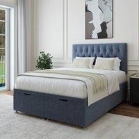 Delivered to a room of choice. A solid platform top base from one of the UK's leading manufacturers. Providing support and a firm foundation for your mattress. Easy to lift end ottoman with ample storage. Finished in a lovely linen fabric with chrome fittings and gliders. This divan includes universal fittings to fit any UK headboard. This product comes with a headboard. Can also be purchased without. Available in Duck Egg, Slate, Midnight, Charcoal or Natural in all sizes. Self assembly required. Base height 33cm (35cm with gliders). Headboard face height 70cm. | Bedmaster Linen Ottoman Divan Base & Button Headboard in Midnight | Size: Super King - Manufacturers part number: Bedmaster_7867869884164